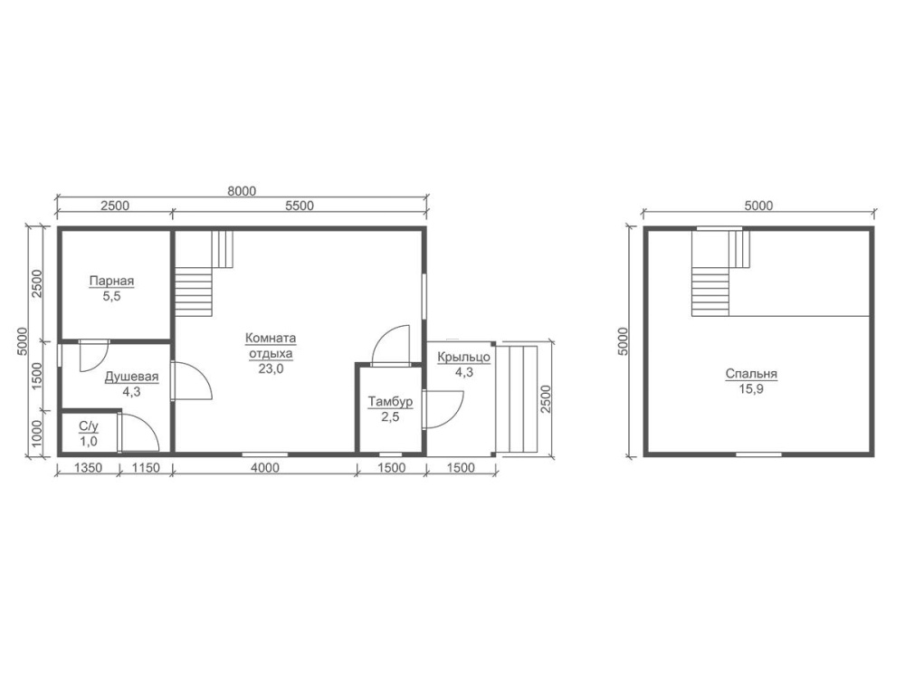 | Перегородки 2-го этажа | Каркасные: доска камерной сушки 40х100 мм, обшитые евровагонкой хвойных пород, камерной сушки, толщиной 12,5 мм. сорт «АВ» (бани с мансардой и в 1,5 этажа). Брусовые: профилированный брус камерной сушки, сечением 90х140 мм. (бани двухэтажные). | Каркасные: доска естественной влажности 40х100 мм. (бани с мансардой и в 1,5 этажа). Брусовые: профилированный брус естественной влажности, сечением 90х140 мм. (бани двухэтажные). |