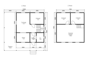 | Лестница (при наличии второго этажа) | Деревянная, одно или двухмаршевая. Перила- заводские резные, балясины- заводские точеные, устанавливаются стартовые точёные столбы. Ступени 40х200 мм. Тетива лестницы- 90х140 мм. | Отсутствует. |