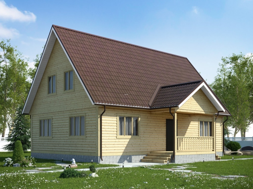 Заказывая дом можно выбрать вид крыши: двускатная, четырехскатная и вальмовая. Двухскатную крышу считают самой востребованной у малометражных домов.