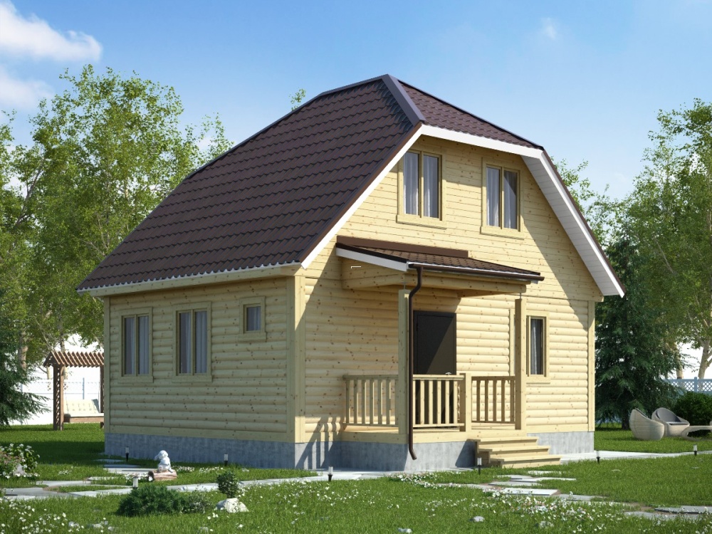 Заказывая дом можно выбрать вид крыши: двускатная, четырехскатная и вальмовая. Двухскатную крышу считают самой востребованной у малометражных домов.