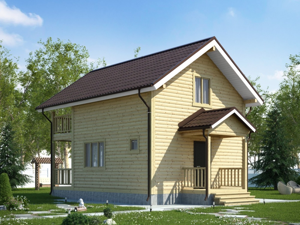 Заказывая дом можно выбрать вид крыши: двускатная, четырехскатная и вальмовая. Двухскатную крышу считают самой востребованной у малометражных домов.